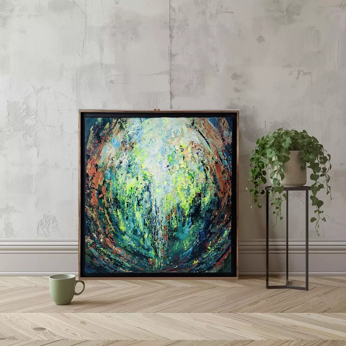 Technique de peinture acrylique sur toile, encadrée.